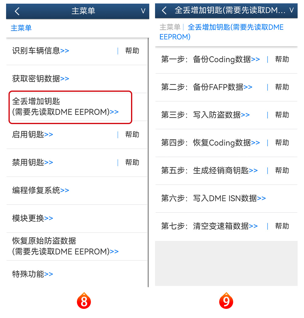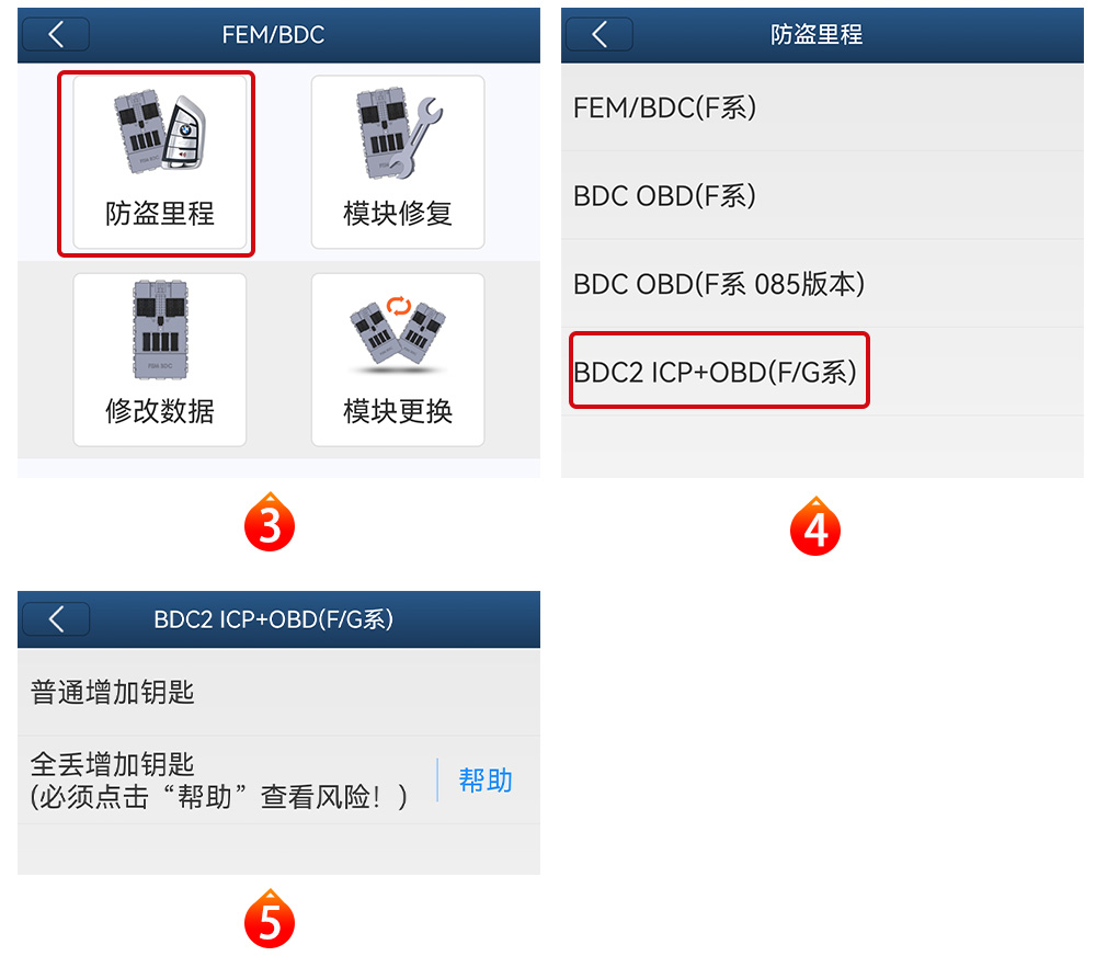 1:包含宝马BDC2钥匙全丢授权,此功能仅作为紧急解决方案(需与模块 38配合使用)。