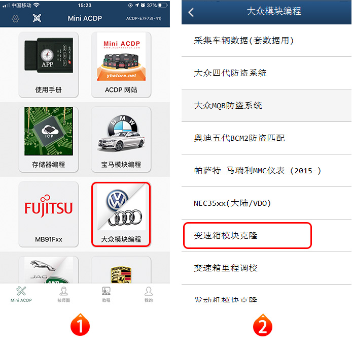 支持大众、奥迪DQ200(0AM/0CW), DQ250(02E/0D9),DL382(0CK),DL501(0B5),VL381(0AW)等型号。