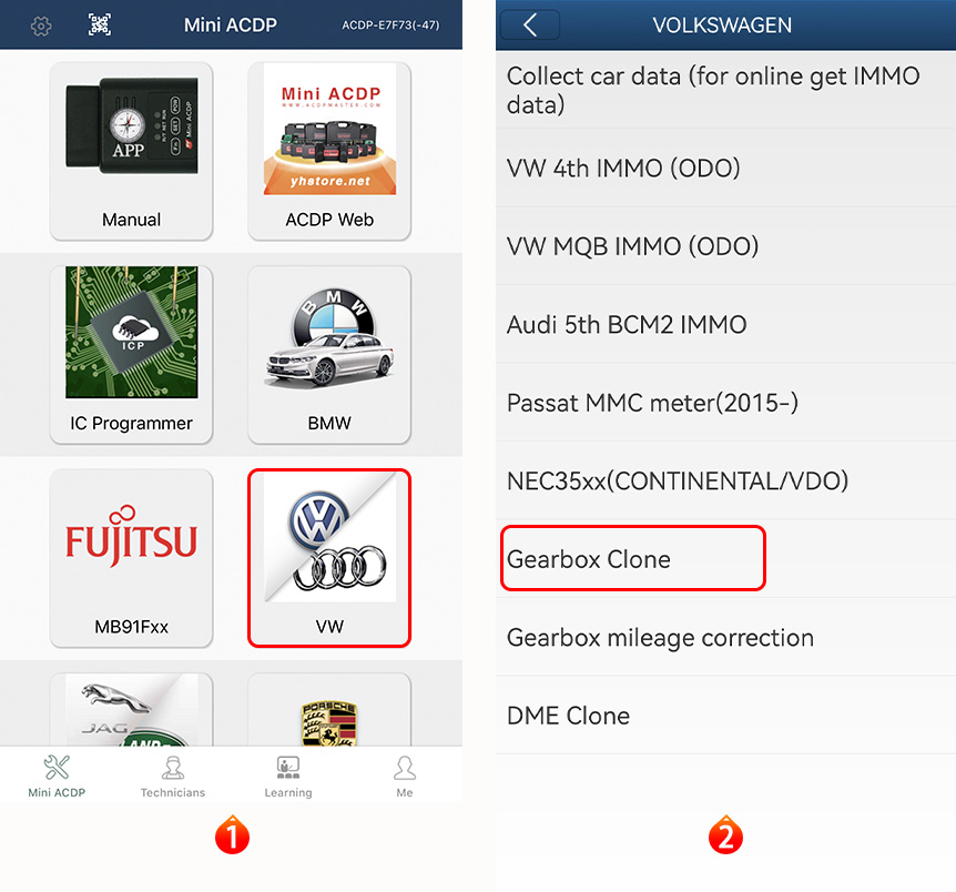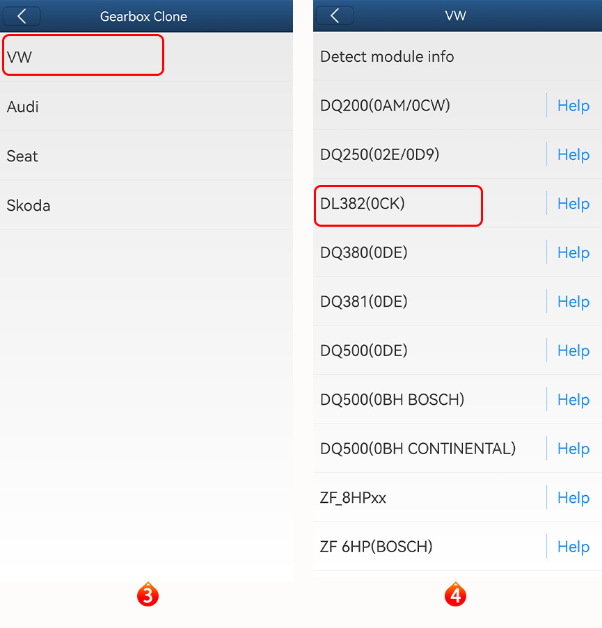 Support VW (Volkswagen), Audi DQ200 (0AM / 0CW), DQ250 (02E / 0D9), DL382 (0CK), DL501 (0B5), VL381 (0AW) models and etc.