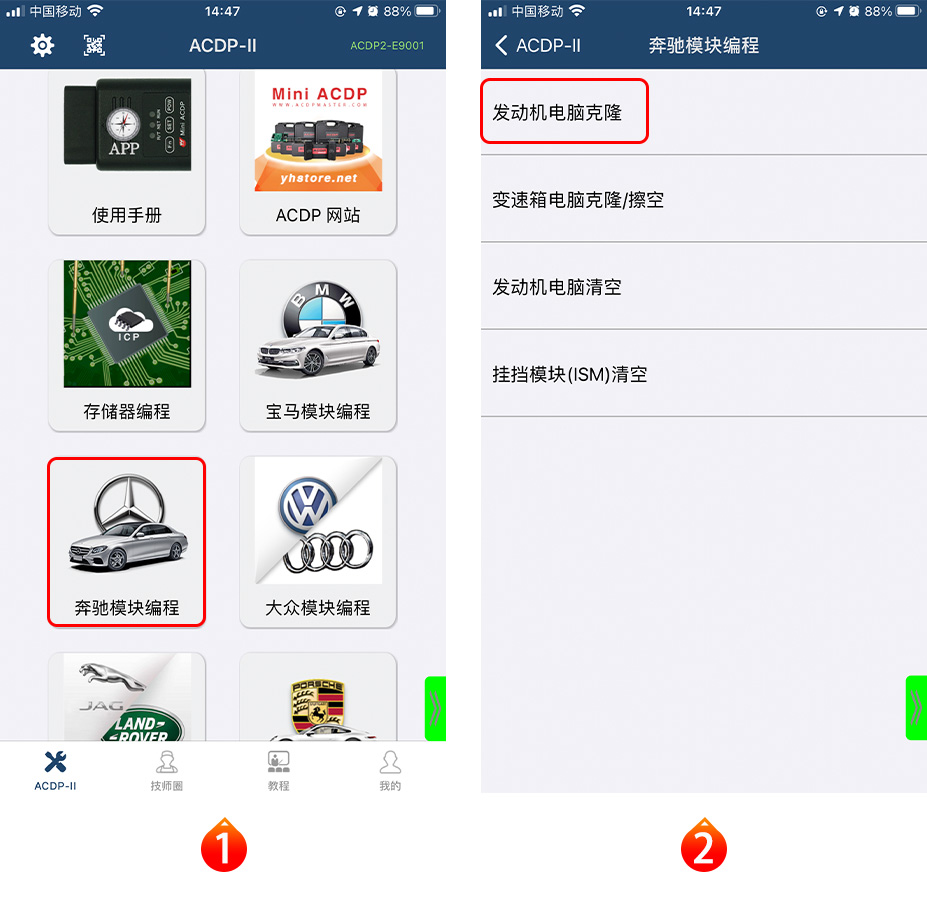X2:MB-Bench-P2-X2支持奔驰133/270/274(ME772)等型号发动机电脑克隆。