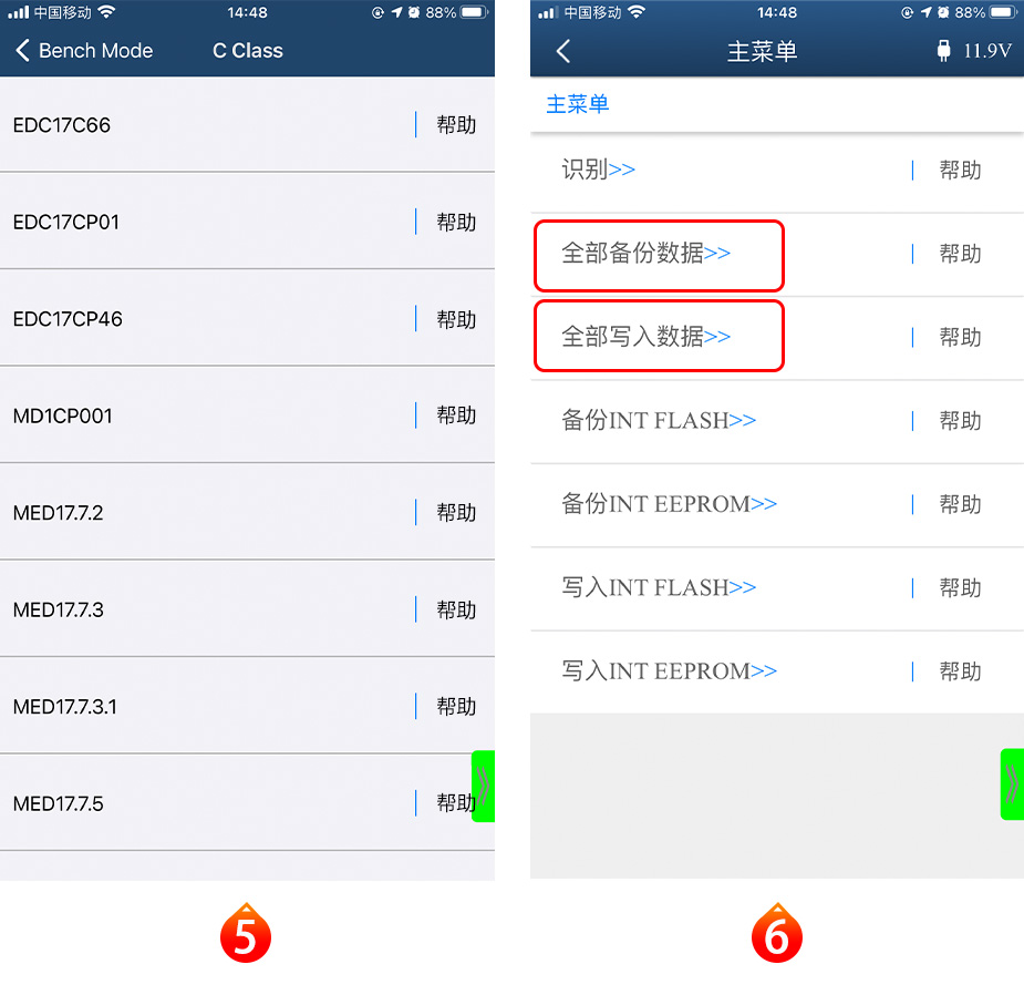 X6:MB-Bench-P2-X6支持奔驰642/654(MD1CP001)等柴油发动机电脑克隆。