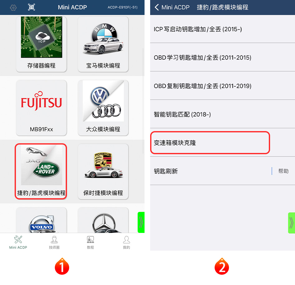 支持捷豹,路虎,克莱斯勒,道奇,菲亚特,本田,吉普等车型的ZF-9HP变速箱电脑BOOT方式克隆。