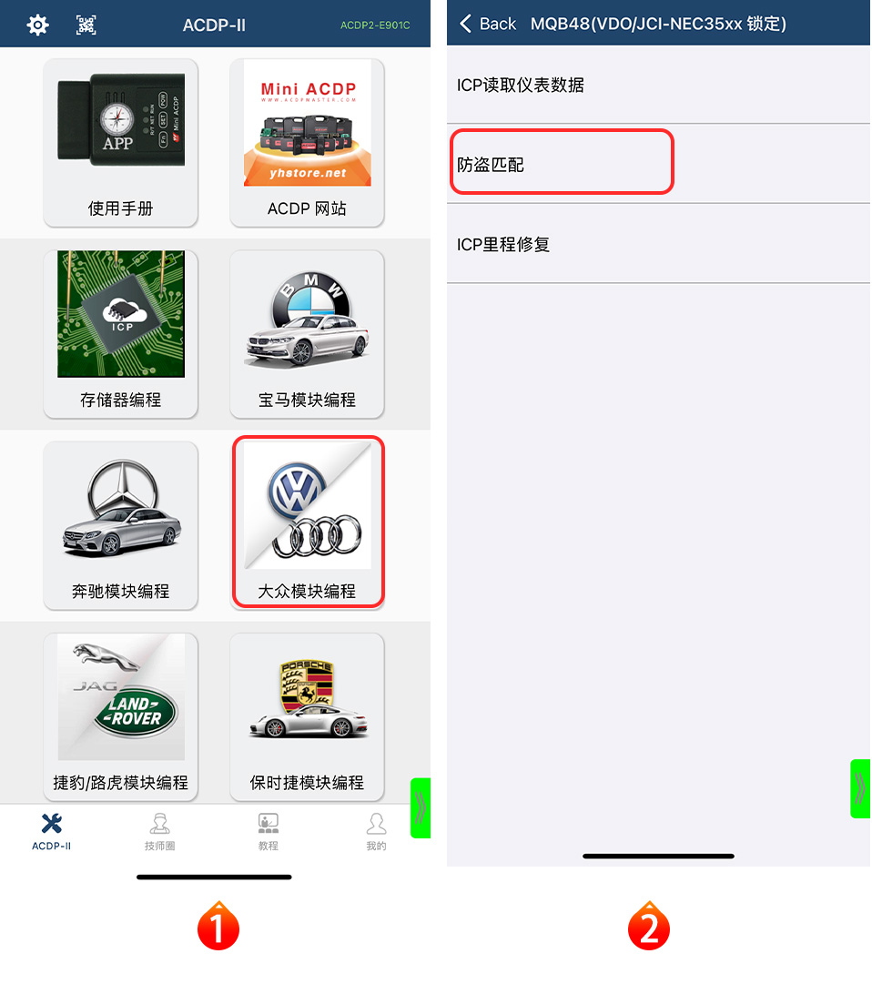 支持大众4代,4.5代,MQB5A等车型防盗匹配及里程修改。