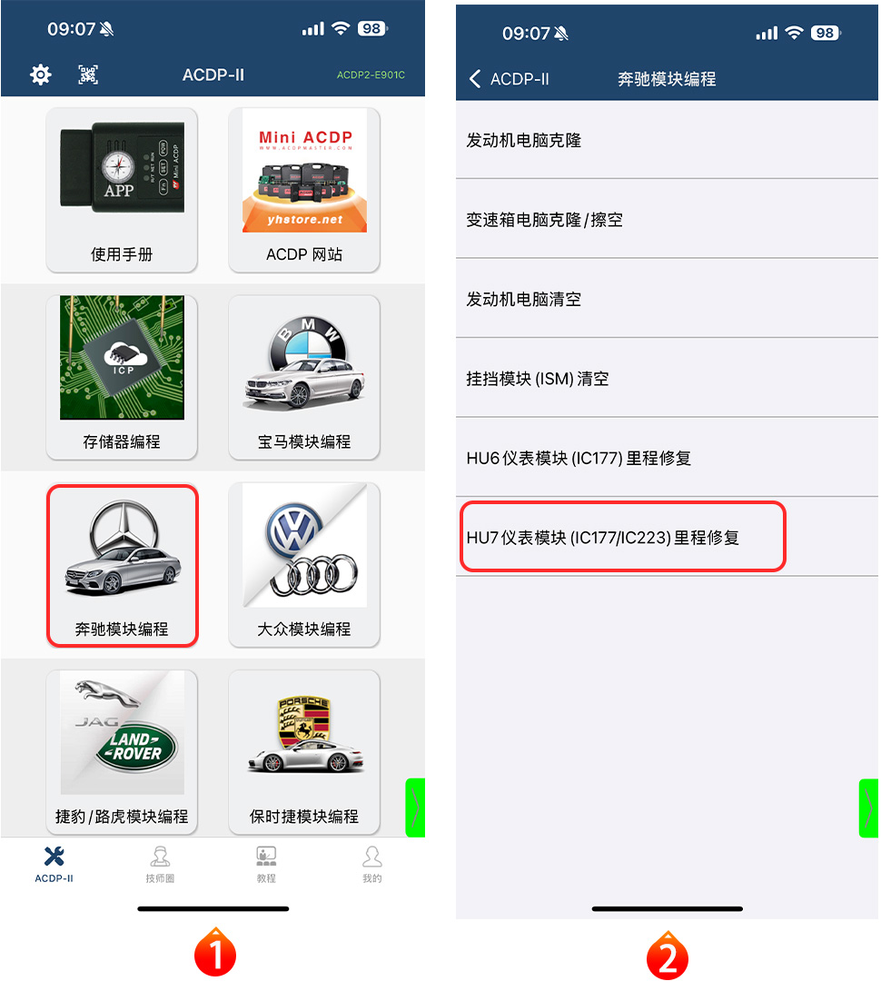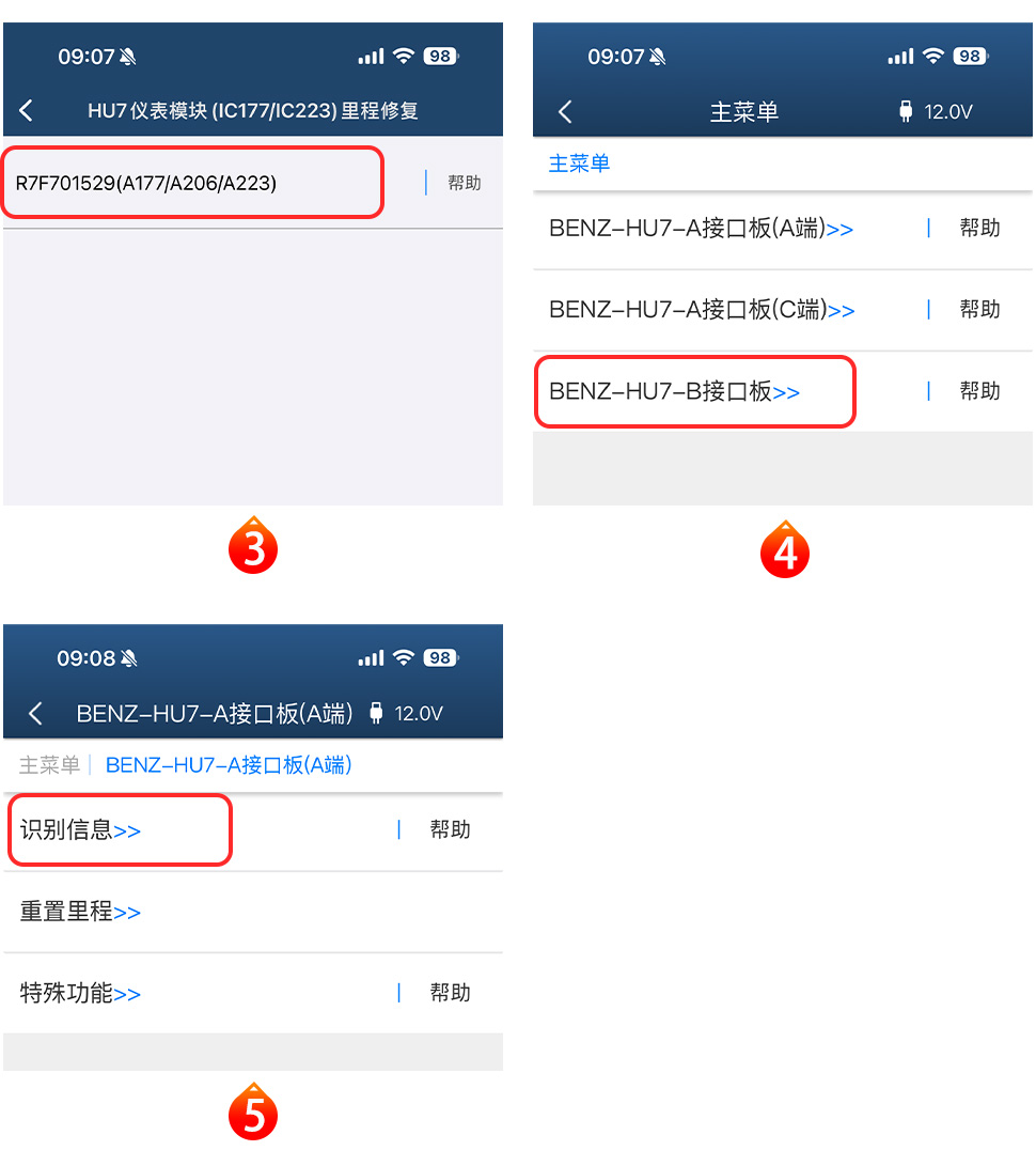 支持芯片型号为R7F7015293/ R7F7015294的奔驰 HU7仪表模块(A 206/A 223/ A 177)里程修复。