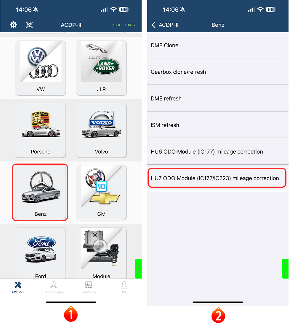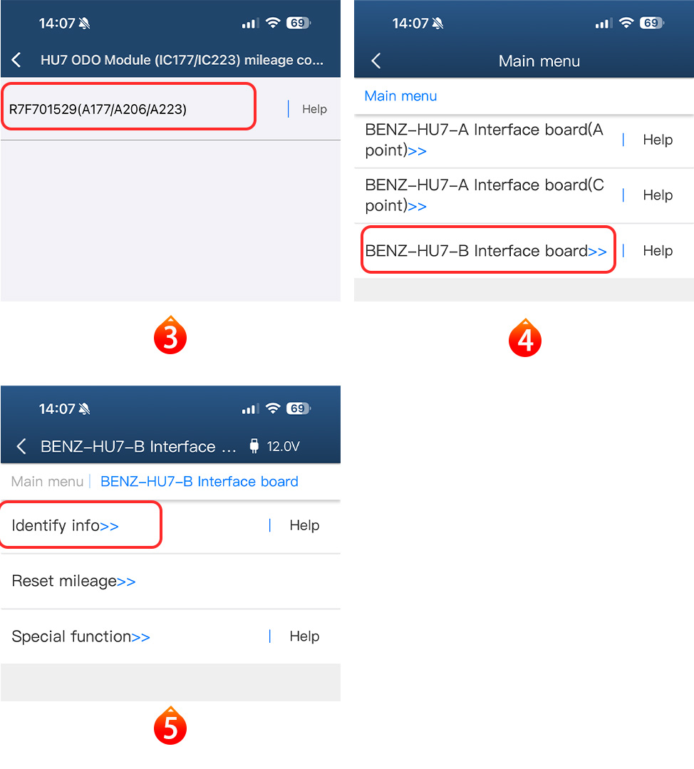Support mileage correction for the MB HU7 instrument module (A 206/A 223/A 177) with chip model R7F7015293/ R7F7015294.