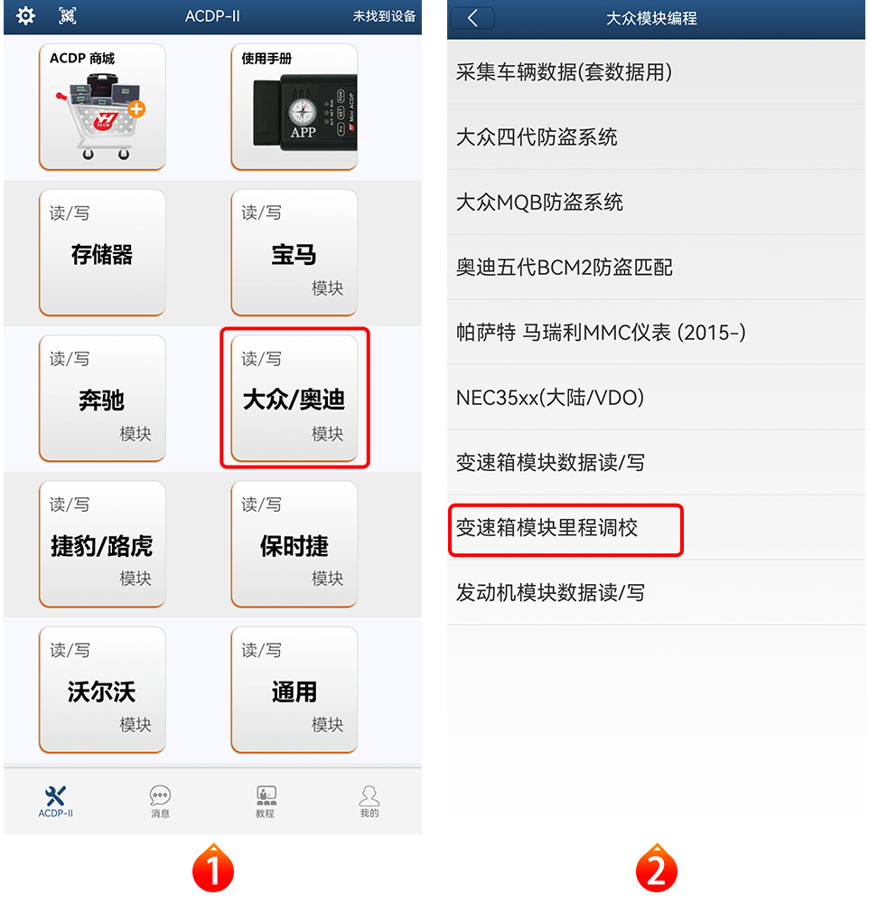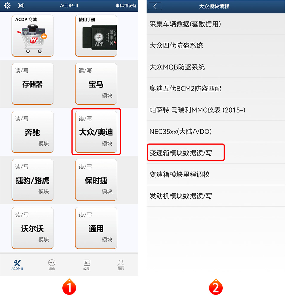 支持22年后大众DQ38x 0DE/0GC ,DQ500 0DL,bootloader为BH1G0401,插头为7针的新款变速箱电脑数据读写及里程修复。
