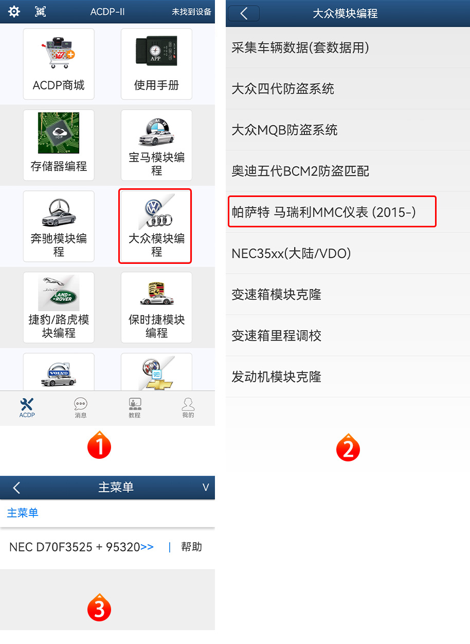 2:15年后帕萨特MMC(NEC D70F3525 + 95320)仪表ICP方式调校。
