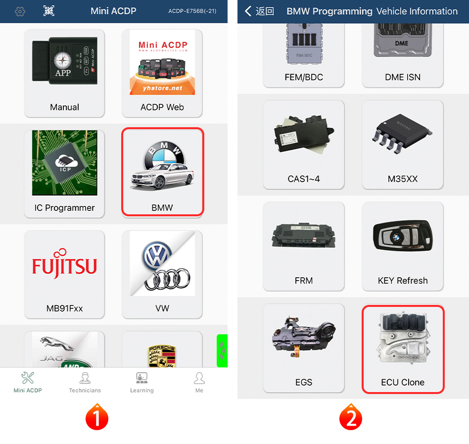 1: No need to open the shell of DME nor program the DME, quickly ead/write ISN and clone on bench mode.