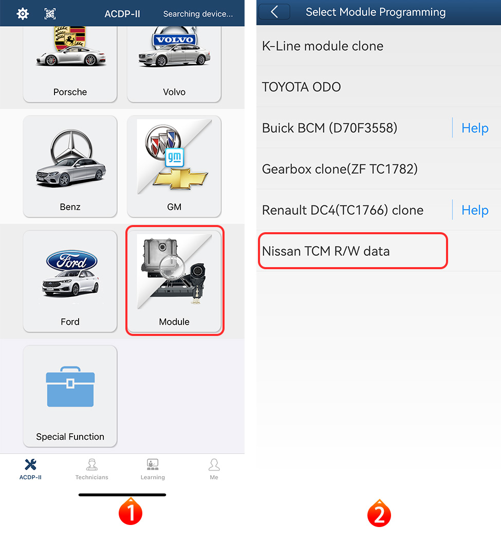 Supports data reading and writing for the Nissan 07A gearbox, and can complete data transfer and replacement.